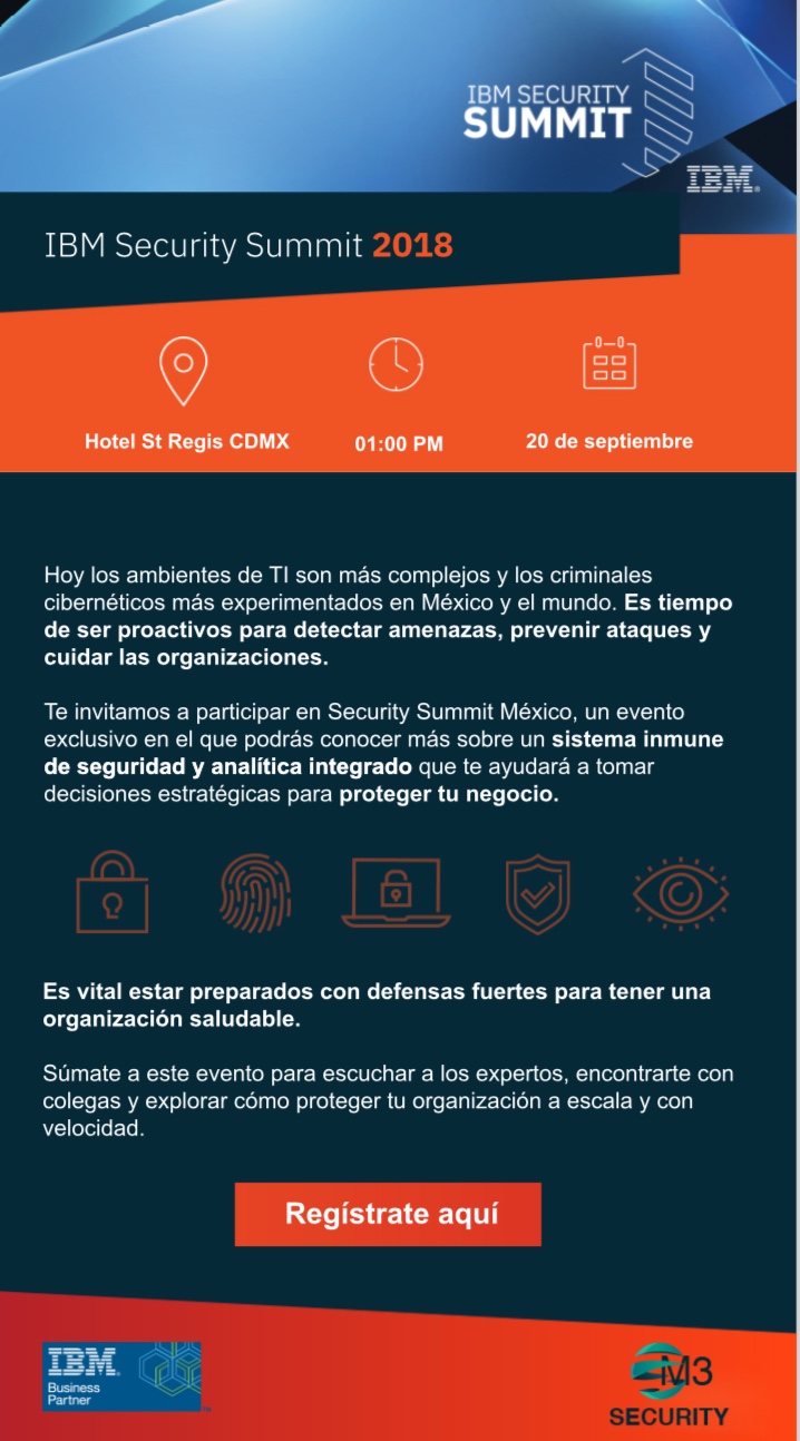 IBM Security Summit Septiembre 2018 CdMx – M3 Security by Marketing Interactum | Sep 14, 2018 | Eventos, Otros, Webinar Te esperamos en el IBM Security Summit México. 20 de Septiembre. Hotel St Regis CdMx. 1:00pm IBM Security Summit Septiembre 2018 CdMx – M3 Security was last modified: septiembre 14th, 2018 by Marketing Interactum